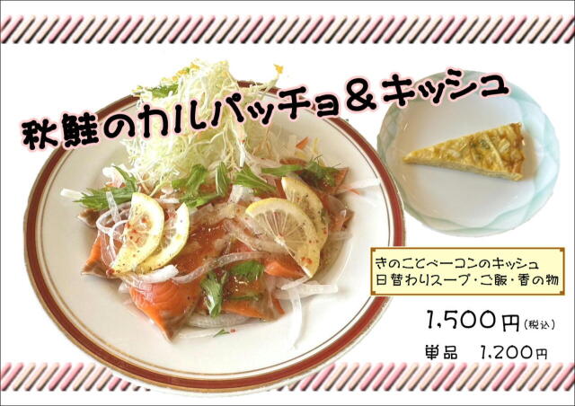 『秋鮭のカルパッチョ&キッシュ 1,500円』